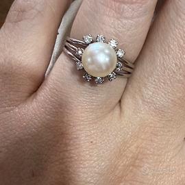 Anello Art Deco con Perla e Diamanti in platino