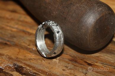 Anello in argento fatto a mano, realizzato con tecnica sand-casting, con tormalina nera incastonata lateralmente.