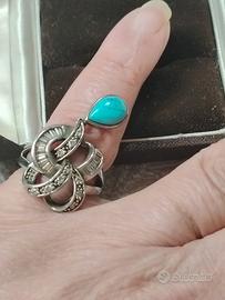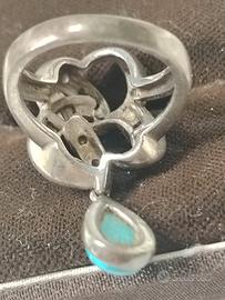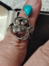Bellissimo anello in argento 925 con cristalli e goccia di turchese Mis 16 mm Disponibile per altre foto I miei annunci sono pubblicati anche altrove