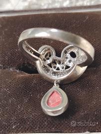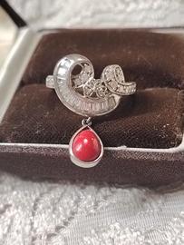 Bellissimo anello in argento 925 con cristalli e goccia di corallo rosso