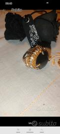 Anello Bigiotteria vintage donna con filare elicoidale di strass ( si garantisce che non ne manca nessuno) che girano intorno ad una pietra artificiale verde centrale . diametro mml 18.