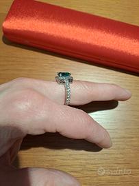 splendido anello con cristalli bianchi luminosissimi e pietra simil smeraldo. misura circa 18 cm diametro. in perfetto stato