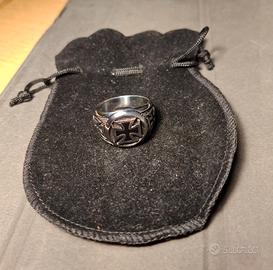 Anello in acciaio "Biker" con tripla croce in resina epossidica , ha un diametro di circa 22 mm (misura US 13).