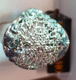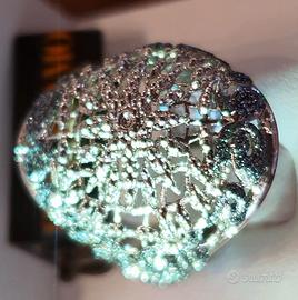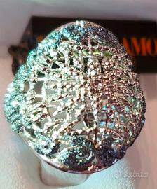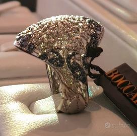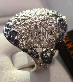 Fantastico anello firmato Boccadamo, bronzo rodiato, regolabile e nuovo con cartellino. Marchio di alta qualità, design: struttura traforata, decorazione impreziosita da una superficie scintillante azzurra effetto "polvere di diamante". Nel mio armadio un anello simile sempre Boccadamo. Sempre nel mio armadio altri gioielli