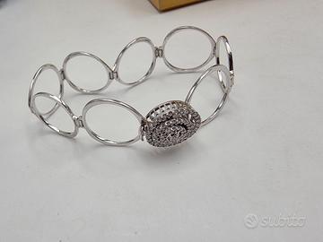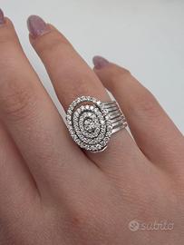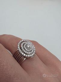 Bellissimo anello trasformabile in bracciale ad anelli in oro bianco 18 carati con una girandola centrale tempestata da 71 diamanti naturali di taglio brillante.