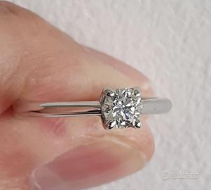Anello in oro bianco 18 kt con diamante taglio brillante – 0,41 ct, colore G, purezza SI2.