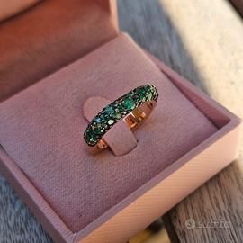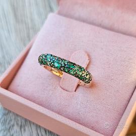 Anello riviera pavé in Cubic Zirconia. Realizzato in lega Golden Rosé. Brevettata dal brand. Placcato oro rosa 18kt, impreziosito da un pavé in cubic zirconia, qualità luminosa. La posizione delle pietre è studiata per creare un effetto ombra delicato e giovanile. Misura 18 (58). Con scatola e busta logata. Prezzo al pubblico 79€ dagli originali 99€