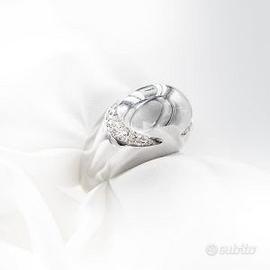 L'Anello Bulgari Cabochon presenta una forma delicata e affascinante, che evidenzia l'abilità artigianale unica di Bulgari. I diamanti, disposti in un pavé impeccabile, aggiungono un tocco di luminosità che completa alla perfezione il design in oro bianco. Un gioiello ideale per eventi speciali, occasioni importanti o come simbolo di un amore eterno.