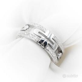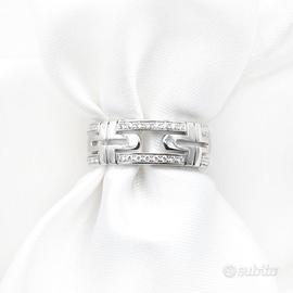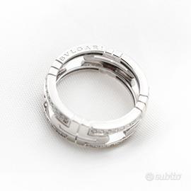 Elegante anello Bulgari Parentesi in oro bianco impreziosito da luminosi diamanti, simbolo dell’inconfondibile maestria artigianale della maison.