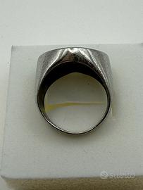 Anello in argento 925 con superficie piatta e design minimal. Perfetto come chevalier da uomo o donna, ha una finitura leggermente brunita che gli dona un look vintage e deciso. Robusto e comodo da indossare ogni giorno.