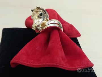 Anello modello cavallo autentico Legnazzi in argento 925 placcato oro 18 Kt senza cubic zirconie.