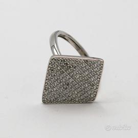 Anello Chimera Fashion in argento 925 con la forma di un rombo ricoperto interamente da zirconi bianchi. Molto luminoso e giovanile misura n° 17 ma è adattabile a diverse misure. Prodotto made in Italy munito di marchio di fabbrica come da legge e completo di confezione e certificato di qualità rilasciato dalla Gioielleria.