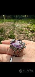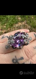 Anello cocktail argento con cristallo viola