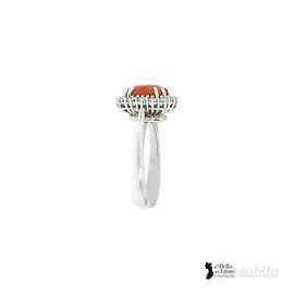 Nuovo anello in oro bianco 18 kt con corallo di Sciacca taglio cabochon, forma