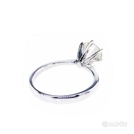 Il diamante è valorizzato da una montatura a 6 griffe, classica e sicura, che lascia entrare la luce da ogni angolazione, esaltandone brillantezza e fuoco.