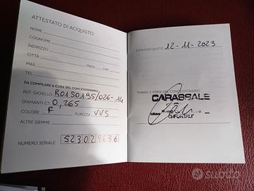 Anello con diamante solitario - Recarlo. Nuovo mai indossato. Confezione originale. Come da certificato in foto.