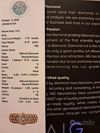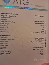 Meraviglioso anello 18 kt con diamanti naturali 1.75 ct "certificati ", e corredato da perizia gemmologica, peso oro anello 8.10 grammi.