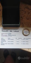 Anello fedina in argento sterling 925 nikel free placcato oro giallo con diamanti colorati.