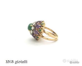 Anello con diamanti, smeraldi e ametiste