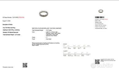 Splendido anello presenta 3,27 carati di diamanti naturali, classificati per il loro colore e la loro brillantezza eccezionali. Caratterizzato da 19 diamanti meticolosamente selezionati, certificati IGI, l'anello è incastonato in un lussuoso oro bianco 14 carati