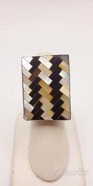 Anello vintage in argento 925, di forma rettangolare, con mosaico in madreperla.