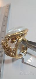 anello con perla coin elemento decorativo a rana tutto dorato a spessore regolabile