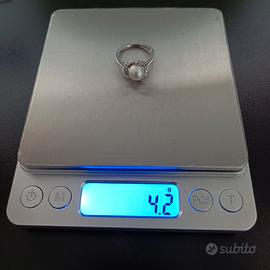 Bellissimo anello in oro bianco 750 perla vera 8 mm e brillantini ...in foto tutte le misure e il peso