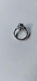 Elegante e discreto, anello con pietra centrale ovale colore acquamarina incastonata in una montatura in metallo argentato. Il design è completato da pietre laterali. Misura 19. Nuovo in confezione originale.