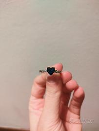 Elegante anello con una pietra centrale a forma di cuore blu, circondata da piccoli zirconi luminosi.