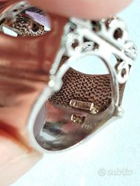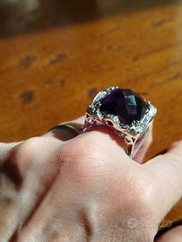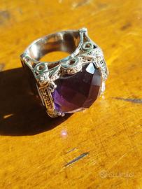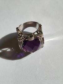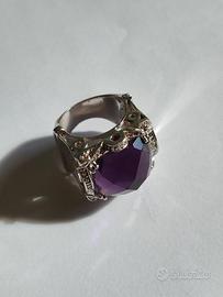 Anello in argento 925 marchiato, la marca non riesco a leggerla. Pietra viola (ametista o quarzo) sfaccettata e molto luminosa. Misura grande. Da ritirare e provare a Milano Rogoredo oppure posso spedire