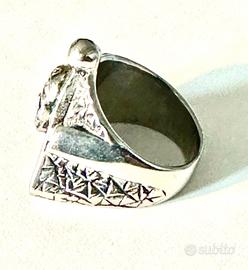 Anello in metallo di pregio finemente inciso con simboli esoterici.