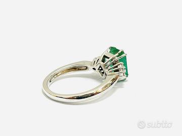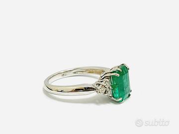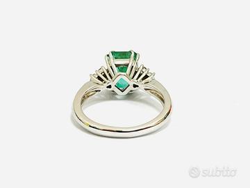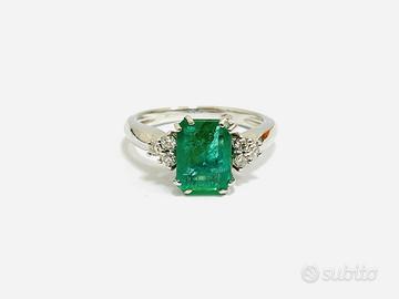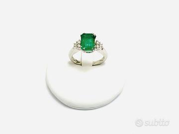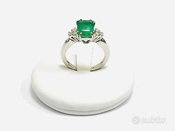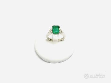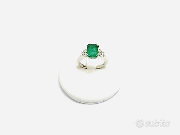 Anello con Smeraldo 2.25 ct e Diamanti 0.18 ct in oro bianco 18 kt