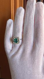Qui presentato, dalla mia collezione personale, un anello a margherita, montato in oro bianco 750, con smeraldo e contorno di diamanti. Le caratteristiche : smeraldo origine Brasile ct. 1,31 diamanti G color S1 ct. 0,97 (quasi 1 carato) peso complessivo gr. 6,60 . Completo di certificato internazionale ALGT per la pietra e di garanzia del gioielliere. . E’ preferibile l’acquisto di persona, in ogni caso, spedizione esclusivamente con corriere FEDEX o DHL, con recapito il giorno dopo, e firma alla ricezione da parte del destinatario. . Chiedete prima di acquistare, in vendita anche altrove. Disponibile a offrire ogni altra informazione e/o foto. . Massima serietà, no perditempo. Grazie. Il mio contatto : 339 3662250.