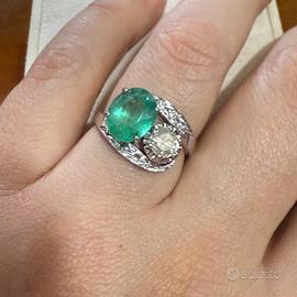 Anello con Smeraldo e Diamanti in Platino