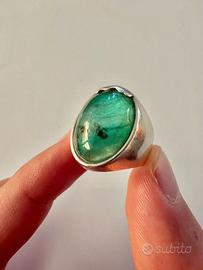 Anello in argento 925/°°°, dal peso di gr. 7,93, con pietra verde, ha fatto rilevare la specie e le caratteristiche qui di seguito meglio specificate: