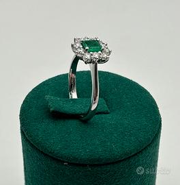 Anello con smerarldo 0,75 ct e 0.60 ct di diamanti totali. Peso grammi 3,8 Garanzia kronovintage No tutto subito Speriamo con dhl in tutta italia