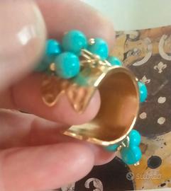 Metallo con finitura dorata e perle turchesi... stile vintage, misura regolabile.