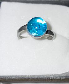 Vendo anello elegante con vetro di Murano blu, lavorato con effetto luminoso e intenso grazie alla foglia d'argento all'interno,montato su struttura color argento dal design raffinato e senza tempo. L’anello è in ottime condizioni, indossato pochissime volte. Perfetto come regalo o per chi ama gioielli artigianali italiani. Consegnato con scatolina, come da foto. Dettagli: Pietra: vetro di Murano originale, colore blu Montatura: color argento Stile: elegante / artigianale Condizioni: come nuovo