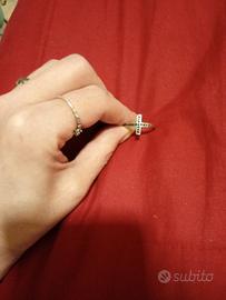 anello d'argento con croce fatta di zirconcini neri,taglia 14/15, comprato in gioielleria