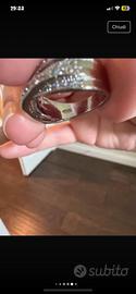 Splendido anello a fascia ampia caratterizzato da un elegante design "incrociato" (cross-over), impreziosito da tre file di brillanti zirconi cubici a taglio rotondo. Le file laterali sono dritte e pulite, mentre quella centrale si incrocia con grazia, creando un movimento scultoreo e sognante che cattura la luce da ogni angolazione. Realizzato in Argento Sterling 925 di alta qualità, questo pezzo unisce la raffinatezza classica a un design moderno e accattivante. E l'accessorio perfetto da indossare da solo come pezzo statement o abbinato ad altri anelli minimali per uno stile più audace. Dettagli: • Materiale: Argento Sterling 925 (con timbro "S925" visibile all'interno, come mostrato nelle foto 1, 4 e 6). • Pietre: Zirconi Cubici di alta qualità, lucenti e bicolore (bianco brillante). • Taglia: unica Il design a fascia ampia garantisce una vestibilità comoda e sicura. • Stile: Contemporaneo / Cocktail / Bon Ton.
