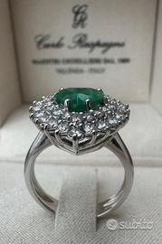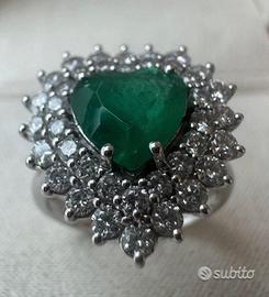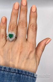 ANELLO CUORE ORO 18kt. DIAMANTI SMERALDO COLOMBIA