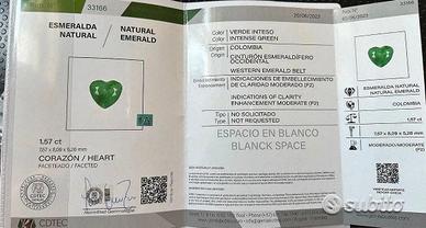 ANELLO IN ORO BIANCO 750°/°° - 18 carati CON DOPPIO GIRO DI DIAMANTI* NATURALI TAGLIO BRILLANTE E SMERALDO COLOMBIANO NATURALE, PROVENIENZA MUZO DI TAGLIO A CUORE CON CERTIFICATO GEMMOLOGICO CDTEC GEM LAB REPORT "THE EMERALD EXPERTS" PESO ORO gr. : 5,50 38 DIAMANTI ct. : 1,06 - colore : G - purezza : VS SMERALDO : ct. 1,57 MISURA DEL DITO: 14 (è possibile cambiare misura dell'anello per qualsiasi informazione contattateci) altre foto a richiesta via email spedizione con assicurata tramite Poste Italiane