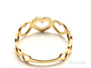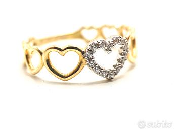 Anello Cuore Oro Giallo Zirconi