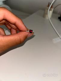 anello semplice con diamantino rosso a forma di cuore,taglia piccola
