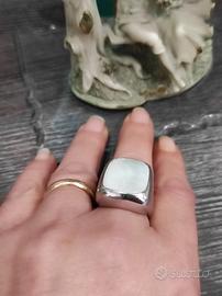 Superbo e massiccio anello anni 80 in argento 925 e sigillo in madreperla. Misura 20mm, condizioni perfette.