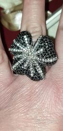 Anello da Cocktail in Argento 925 e Swarovski. Presenti punzoni di autenticità, sia dell'Argento 925 che del marchio registrato. Comprato in gioielleria (pertanto oggetto che attesta che trattasi di Argento italiano) ed indossato una volta sola per un'occasione, poi riposto e conservato sempre con molta cura.