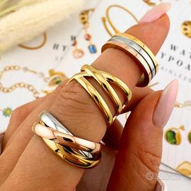 Questo splendido anello da donna è nuovo e nella confezione originale. Si distingue per il suo design elegante e la lavorazione di alta qualità. Un gioiello intramontabile che valorizza ogni outfit. Perfetto come regalo per una persona speciale o per te stessa. Fai un'offerta ora e regala gioia! Materiale: acciaio inossidabile, rivestito con 3 stratti oro 750 Inserzioni: No. Tipo di anello: misura 7 Sallinosbijoux è impermeabile e ipoallergenico. La placcatura è duratura e non si ossida. Peso: 6 g