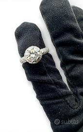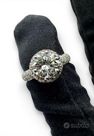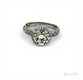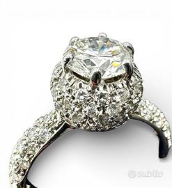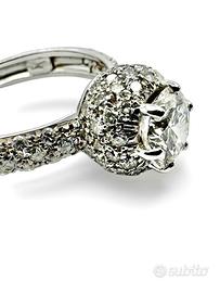 Anello in oro bianco 750” Damiani” peso grammi 4,50 con incastonato al centro diamante taglio brillante del peso totale di 1,1 carati colore I-J purezza VSI- VS2. + diamanti taglio brillante di peso totale di 1,00 carati colore H-J purezza VS-SI misura 11/51 possibilità di finanziamento spedizione tracciata e assicurata