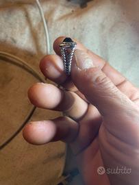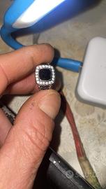 Vendo anello David Yurman originale, modello Petite Albion. • Argento sterling 925 • Onice nera centrale • Pietre laterali zirconi (verificati da gioielliere) • Iconico gambo Cable David Yurman • Punzonatura interna © D.Y 925 presente L’anello è originale in ogni sua parte. Le pietre laterali non sono diamanti ma zirconi, motivo per cui il prezzo è adeguato. Condizioni molto buone. Visionabile a Milano
