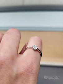 Vendo elegante anello in oro 19 carati con diamante da 0.12 ct (colore W, purezza VS).